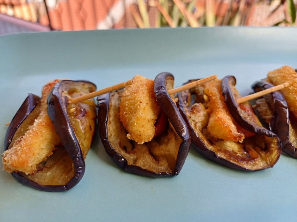Deliciosos y Crujientes Fingers de Pollo al Horno con Tomatitos Cherry y Berenjena.